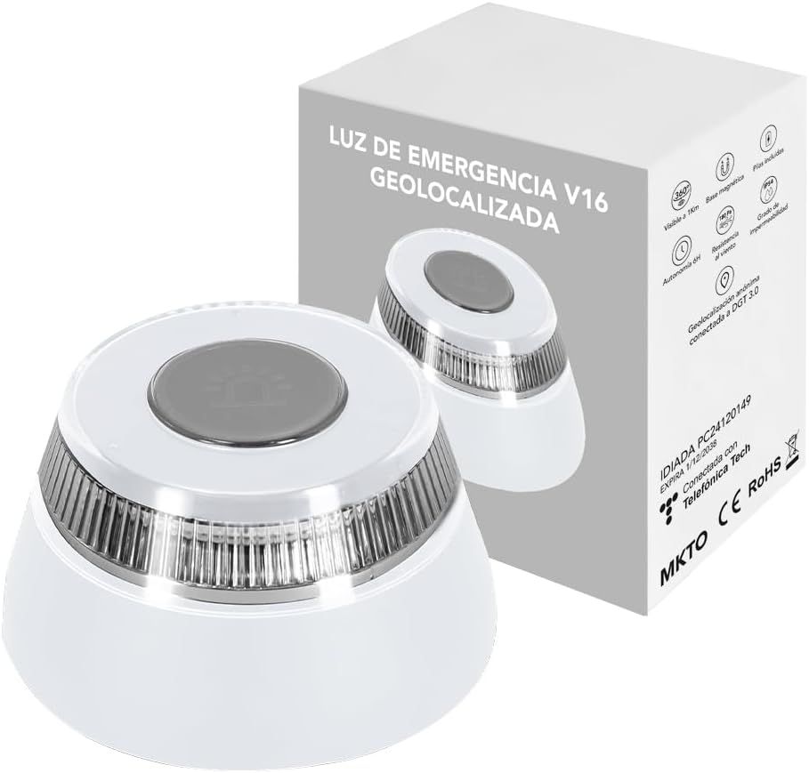 GLOBAL APPLIANCES Luz Emergencia Coche Homologado DGT con Geolocalización | Baliza V16 con GPS y Base Imantada | Luz avería coche Visibilidad 1 Km IP 54 (blanco)