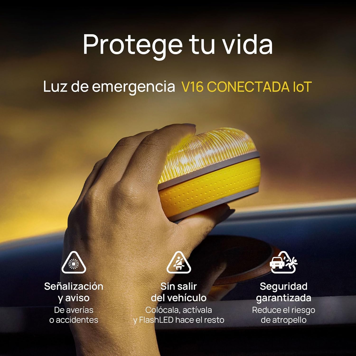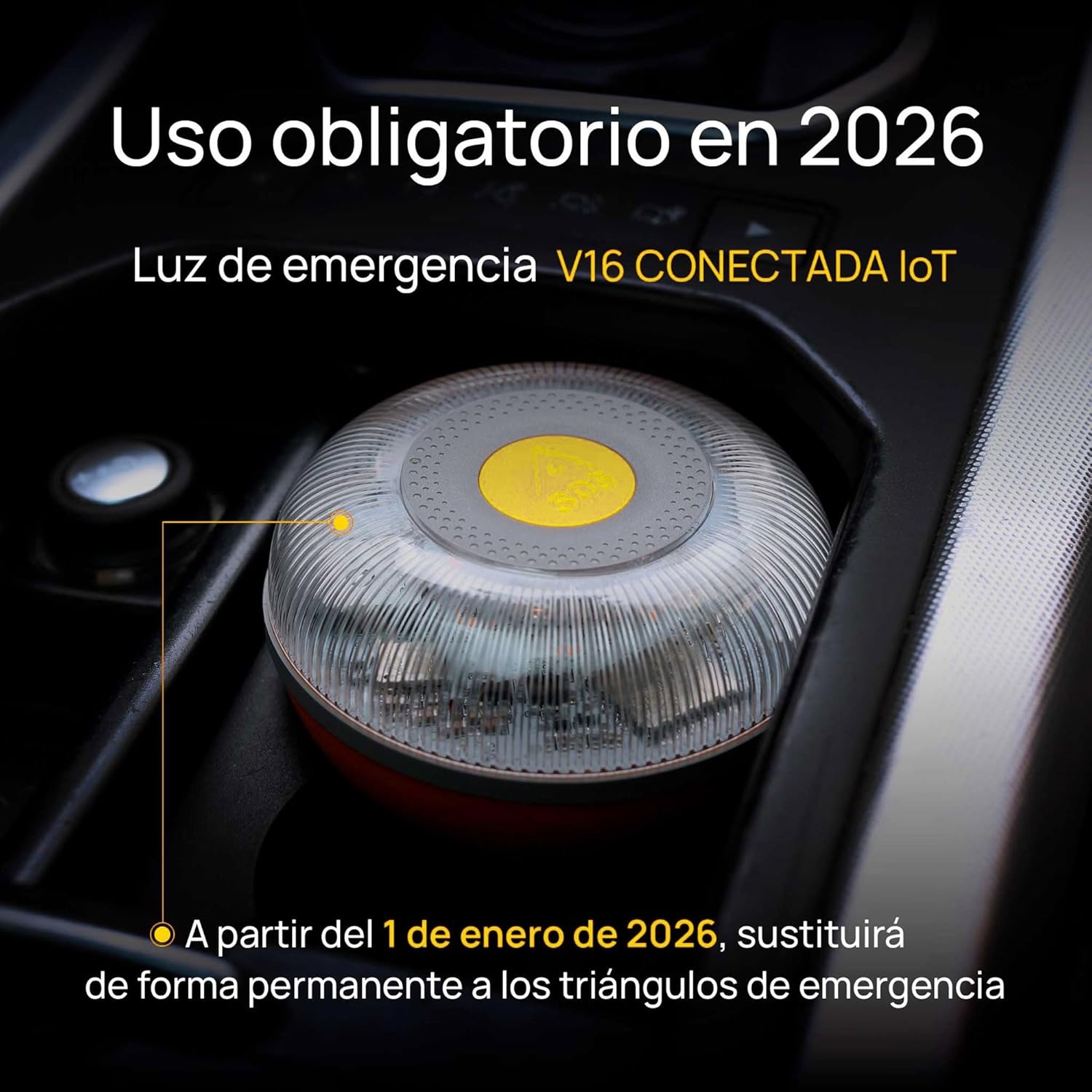 Tras la reciente aprobación del Real Decreto 1030/2022, las autoridades de tráfico recomiendan la luz de Emergencia V16 Geolocalizable. Sustituirá los triángulos de emergencia, si así lo deseas, desde el 1 de julio de 2021 y será de uso obligatorio a partir del 1 de enero de 2026.